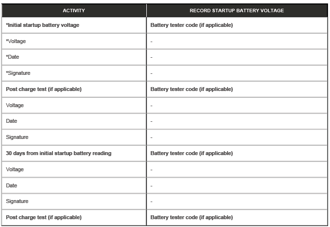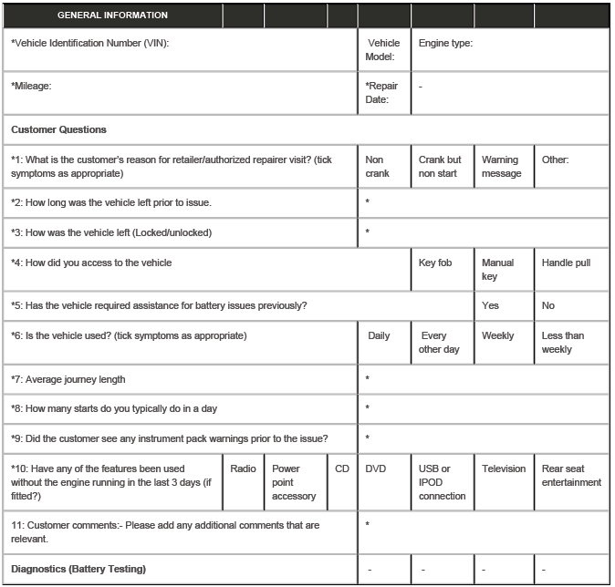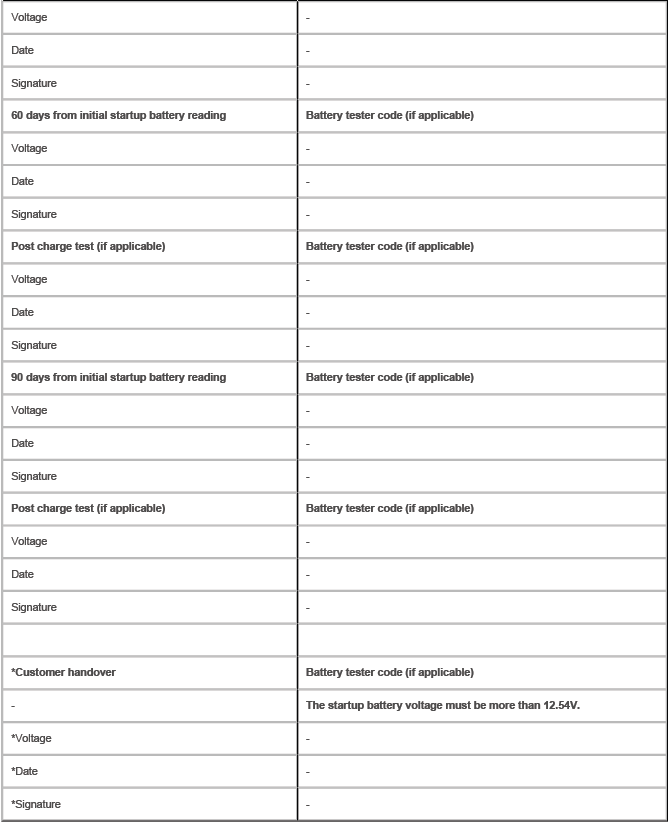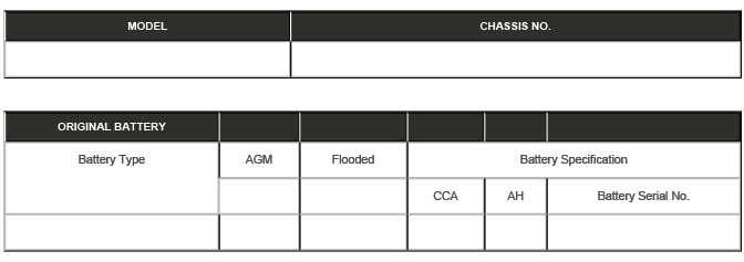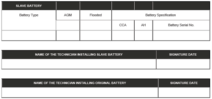 Showroom and Slave Battery Condition Report Form