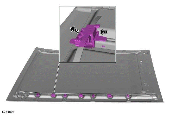 - Install the inner canvas front section at the 5 clips as illustrated.