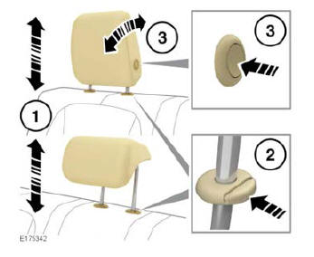 Never adjust the head restraints while the vehicle is in motion. Doing so could potentially cause a loss of vehicle control and personal injury.
