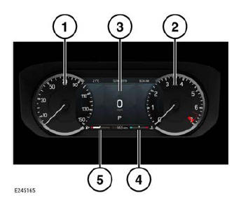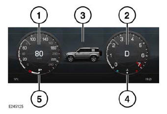 The standard instrument panel comprises permanent speedometer (1) and tachometer dials (2). The information panel (3) is only visible when the vehicle's ignition is switched on.