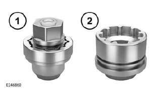 Locking lug nuts can be removed and fitted using only the special adapter provided. To release the locking lug nuts: