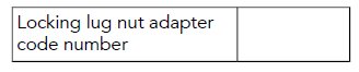 Note: Should a replacement locking lug nut adapter be required, consult an authorized retailer. Record the locking lug nut adapter code number in the table below to allow a replacement to be sourced, if required. Depending upon the specification of the locking lug nut adapter, the code may be stamped on the locking lug nut adapter or supplied on a separate card.