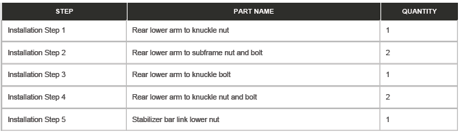 Renew Part: Rear lower arm to knuckle bolt Quantity: 1.