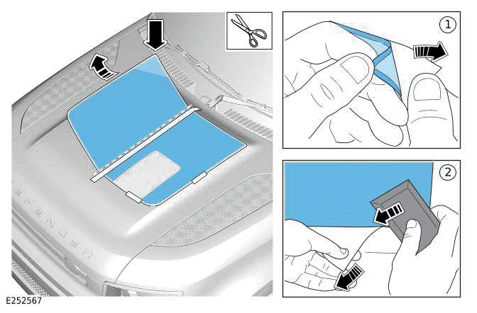 of the backing paper. Work the squeegee rearward. Check the alignment.