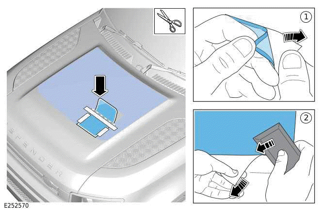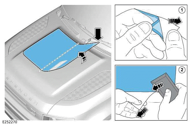 Using suitable tape, secure the decal in position on 3 sides of the decal