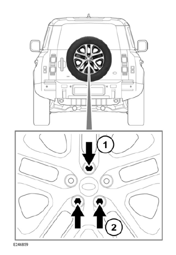 The location of the locking lug nuts depends on the specification of the vehicle: