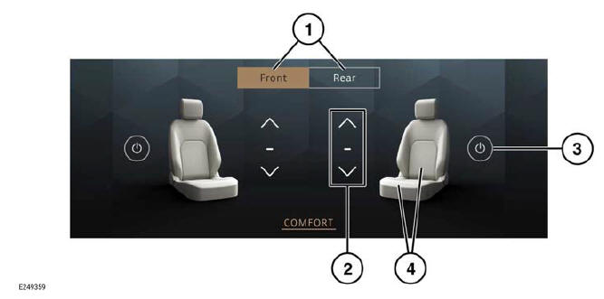 - Front or rear seat selection: Touch to