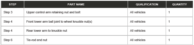 Renew Part: Front lower arm ball joint to wheel knuckle nut(s) Quantity: 1.