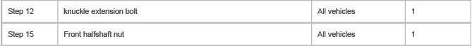 Renew Part: Front halfshaft nut Quantity: 1.