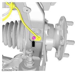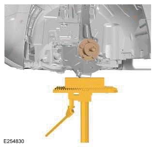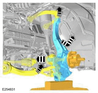 Use a suitable transmission jack to support the front wheel knuckle.